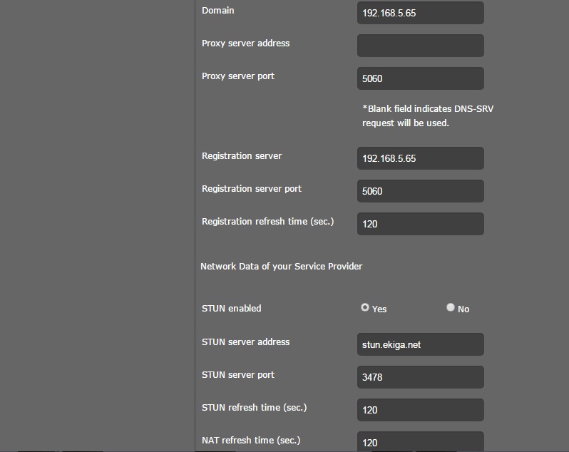 GigasetMaxwell10Sete Web arayüzü ile bağlantı sağlandığında Telephony / Connections Name/Provider seçilip Edit tuşuna basılır. ![]() Santrala kayıt için gereken kullanıcı adı, şifre, auth id alanları doldurulur ve Advanced Settings ayarları için Show butonu tıklanır. ![]() Domain ve Registration server alanlarına santralın ip adresi yazılır ve Stun enabled Yes seçilerek aşağıda gösterildiği şekilde parametreler girilir. ![]() |