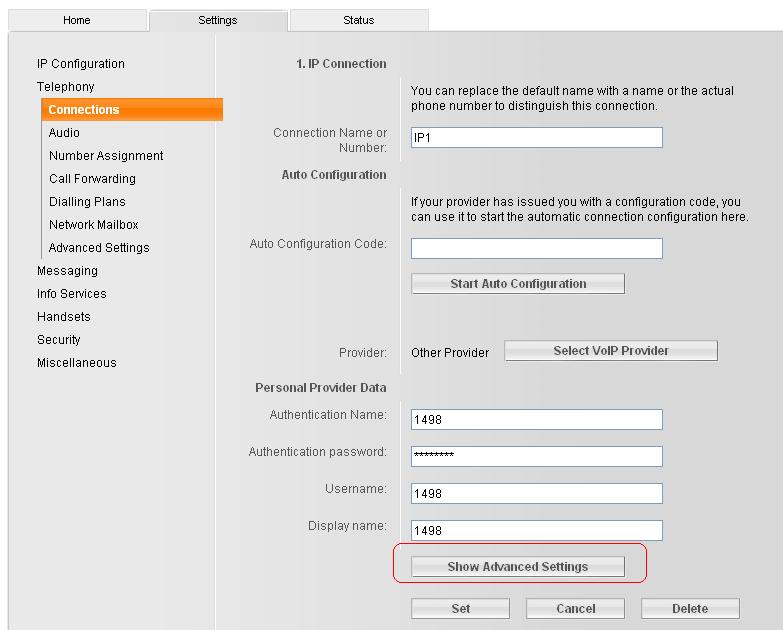 SiemensA580IPBaz istasyonunun elektrik bağlantısını ve LAN ethernet kablosunu bağlayıp telefonu açtığınızda telefonunuza gelen sistemin ip adresini kullanarak Dect ünitesine web arayüzü ile bağlanın. ![]() Pin kodu başlangıç değerlerinde 0000 dır, pin kodunu girip OK tuşuna basınız. Açılan güvenlik uyarısı sayfasında OK tuşuna basarak bir sonraki sayfaya geçin ![]() Home sayfasında Settings'ı tıklayın ![]() Baz ünitesinin statik ip adresi kullanması için IP address type liste kutusundan Static'i seçin. Baz ünitesinin ip adresi, subnet mask, gateway ip adreslerini düzenleyin ve Set butonuna basın ![]() Settings sayfasında Telephony/Connections'ı tıklayın. Baz ünitesinin register olacağı yeri seçmek için 1. provider'ın Edit butonuna basın ![]() Santralda tanımladığınız sip kullanıcısının bilgilerini Personel provider data altında yer alan user name, auth.id, password alanlarına girin. ![]() Show advanced settings'ı tıklayın ve General provider data altında yer alan Domain, registrar server alanına santralın ip adresini girin. ![]() Telephony/Audio alanında Selected codecs tablosunda G729, G711A,U kodeklerini bırakın ![]() Son olarak santralda G729 paket boyutunu 20 ms olarak ayarlayın |