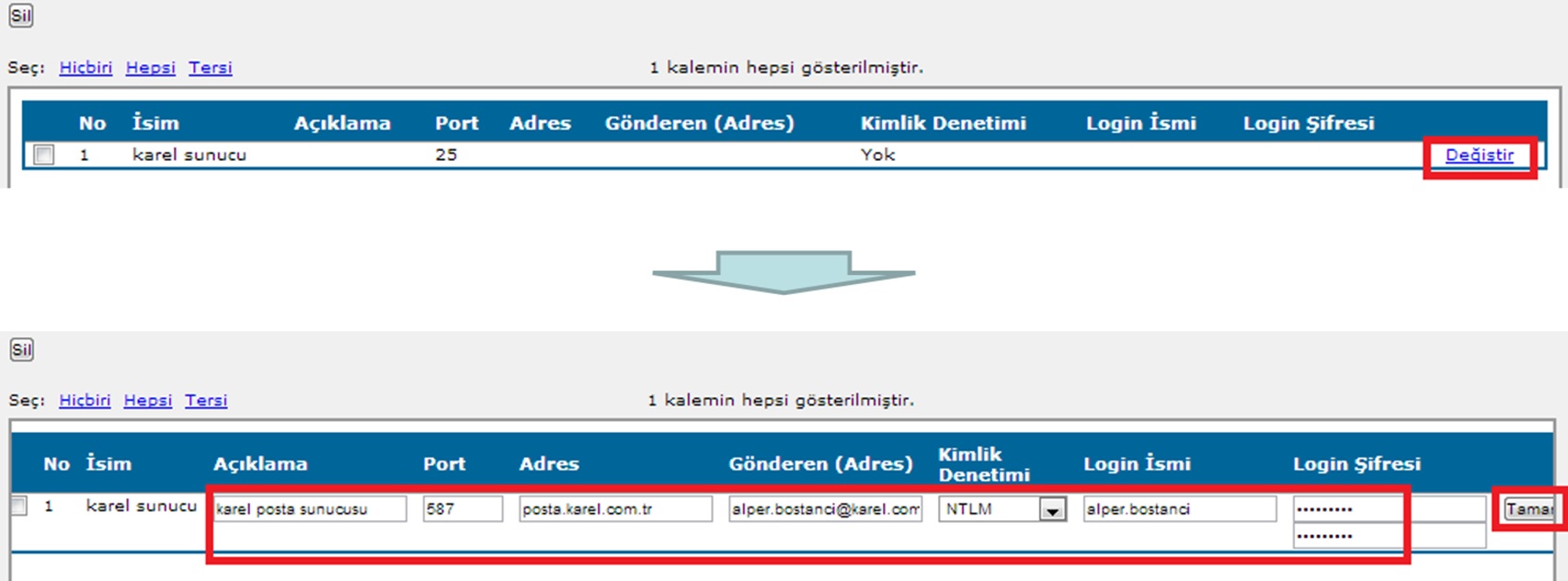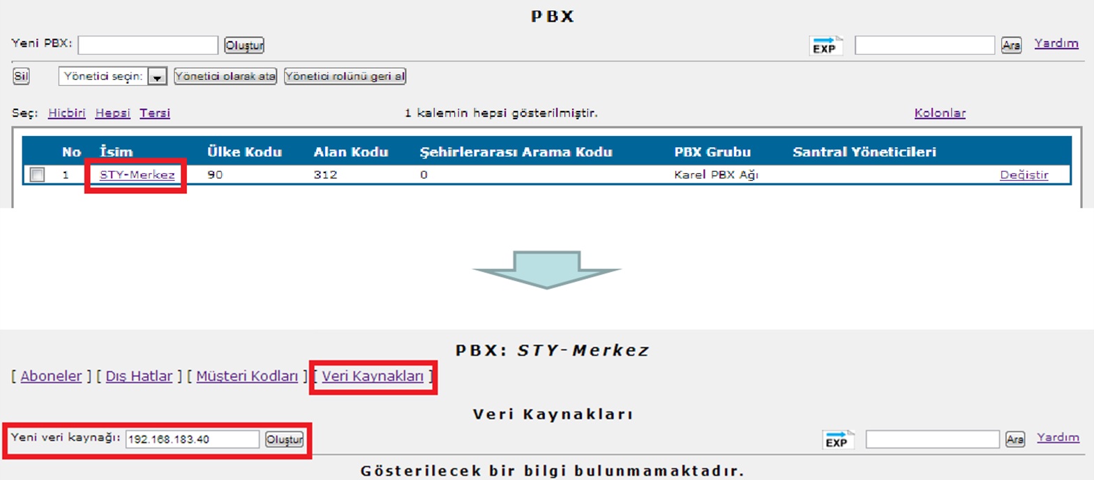 WebcmAyarlarWebCM uygulamasına herhangi bir Web tarayıcı yardımıyla bağlanmak için; Eğer Web-CM’ nin yüklü olduğu PC’ den bağlanılacak ise, Web tarayıcıya; 127.0.0.1 yazılır ve entera basılır veya, PC’ nin tam adı yazılır ve entera basılır. Eğer başka bir PC’ den bağlanılacak ise, Web tarayıcıya; Web-CM’ nin kurulu olduğu PC’ nin IP adresi yazılır ve entera basılır veya, Web-CM’ nin kurulu olduğu PC’ nin tam adı yazılır ve entera basılır. Karşınıza gelecek giriş ekranında kullanıcı adı bölümüne webcm , şifre bölümüne krl123 yazarak bağlanabilirsiniz. Bu kullanıcı hesabı, sistemin kurulum sonrası ilk defa konfigüre edilebilmesi için kurulum programı tarafından yaratılır. Güvenlik açığı olmaması için, sistem ayarları yapılıp, uygulama kullanıma hazırlandıktan sonra bu hesap silinmelidir. ![]() Web-CM arayüzüne giriş yapıldıktan sonra aşağıda yer alan ekran gelecektir. İlk giriş yapılan ekran ‘‘Normal Kullanıcı’’ hesabının ekranıdır. Konfigürasyon ayarlarını yapmak için WebCM Yönetici rolüne geçiş yapılmalıdır. ![]() Raporlarda kullanılmak üzere e-posta sunucu ayarlarını yapınız. ![]() E-posta sunucu ve e-posta hesap ile ilgili ayarlar yapıldıktan sonra Tamam’ a basılır. ![]() Sistem konfigürasyonuna girerek, E-posta sunucusunu seçin. Referans para birimi ve varsayılan lisan seçenekleri uygun değilse değiştirin. ![]() NOT: Sisteme ilk e-posta sunucusu 1. adımda tanıttığımız için E-posta Sunucu olarak 1. adımda yarattığımız sunucu/hesap otomatik olarak gelmiştir. Ağ ortamında birbirleri ile haberleşen birden fazla santral mevcutsa, PBX Grupları’na girerek, her bir ağ için bir PBX grubu yaratın. ![]() PBX ayarlarına girerek, YENİ SANTRAL (PBX) tanıtımı ve ayarları yapılır. Bir PBX grubuna dahil olan santrallar için bir önceki aşamada yaratmış olduğunuz PBX grubunu ya da PBX gruplarından uygun olanı seçin. Her bir santral için ülke kodu, alan kodu, şehirlerarası arama kodu bilgilerini eksiksiz doldurun. Ardından her bir santral için veri kaynağı tanımlamalarını yapın. Veri kaynaklarını aktif hale getirin. PBX grubundaki santrallar için, abone tanımlarını yapın. ![]() Kolonlar bölümünde PBX Grubu parametresinide görebilmek için açmamız gerekmektedir. ![]() Yaratılan Santral için Ülke Kodu, Alan Kodu, Şehirlerarası Arama Kodu ve PBX Grubu bilgileri tanımlanır ve Tamam’ a basılır. NOT: WebCM’ nin kurulum yapılan yerdeki kullanımında, kurulum yapılan santralle bir arada olan başka santral yok ise yani bir PBX grup içerisinde değil ise PBX Grubu seçmek gerekli değildir. ![]() Santralin veri kaynağını Web-CM sistemine tanıtma işlemini gerçekleştirmek için, yaratılan PBX’ in isim bilgisinin üzeri tıklanır ve Veri kaynakları bölümüne gidilerek, santralin IP adresi yazılır ve Oluştur’ a basılır. ![]() Yaratılan veri kaynağının durumunu Aktif konumuna geçirmek için Değiştir’ e basılır ve Aktif parametresi Evet yapılır ve Tamam’ a basılır. ![]() Sisteme yeni bir veri kaynağı eklendiğinde, aktif konumu değiştirildiğinde ya da var olan bir veri kaynağı silindiğinde Veri Toplayıcı Hizmeti yeniden başlatılmalıdır. Web-CM tanımlanan santral için çağrı kayıtlarını almaya hazırdır. ![]() |