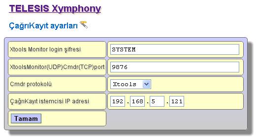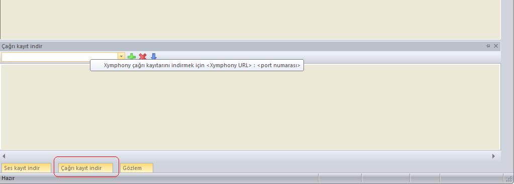 XtoolsCagriKayitIndirSantraldan çağrı kayıtlarını (cmdr) indirmek için santralın ana sayfasında Ethernet/Çağrı kayıt tıklandığında açılan Çağrı kayıt ayarları sayfasında Çağrı kayıt istemci ip adresi metin kutusuna Xtools'un koşturulduğu pc'nin ip adresinin yazılıp ardından santral parametrelerinin saklanıp santralın yeniden başlatılması gerekir. ![]() Çağrı kayıt indir butonunun üzerine gelindiğinde otomatik gizli pencere açılır. Pencereyi otomatik gizleden çıkarmak ve başka bir yere taşımak için otomatik gizle işareti tıklanır ve ardından pencere mause yardımıyla istenen lokasyona taşınır. ![]() Çağrı kayıtları indirmek için metin kutusuna santralın ip adresi Ya da url adresini ve port numarasını yazın. Santral çağrı kayıt için standart port numarasını (9876)kullanıyorsa port numarasını yazmadan da bağlantı sağlayabilirsiniz. Bağlantı sağlandığında alttaki ikon yeşil rengi alır, bağlantı sağlanamaz ise kırmızı rengi alır. Bağlantıyı koparmak için Bağlantıyı çöz butonunu tıklayın, ekrandaki bilgilerin kaymasını durdurmak için Kaydır butonunu tıklayın. ![]() Aynı anda dört farklı santraldan çağrı kayıt indirilebilir bunun için bir yerden çağrı kayıt indiriliyorken metin kutusuna ikinci santralın ip adresi veya url adresini yazıp bağlan butonuna basın. |