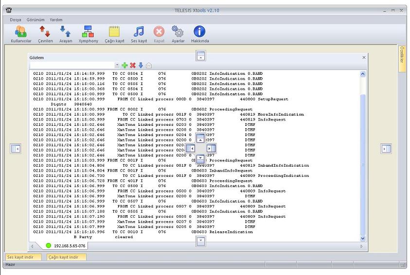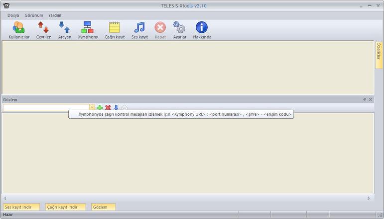 XtoolsGenelBilgilerXtools programı açıldığında bilgisayarınızda koşturulan işletim sisteminin diline göre otomatik olarak Türkçe yada İngilizce olarak açılır. Programın dilini Windows işletim sisteminden farklı dilde kullanmak için dil paketinin yüklü olması gereklidir, örneğin ingilizce işletim sistemi olan bir pc de Xtools'un dilini Türkçe yapmak için Türkçe dil paketinin yüklü olması gereklidir. Xtools'un dilini Ayarlar menüsünden değiştirebilirsiniz. Programın üst bandında Dosya, Görünüm ve yardım menüleri vardır. Dosya menüsünde yer alan özellikler bu menünün altında yer alan ikonlarla da aktif edilebilir. Görünüm menüsünde standart Windows pencere ayarları yer alır ve yapılan değişiklikler kayıt edilerek program kapatılıp açıldığında son şeklini muhafaza eder. Yardım menüsünde Xtools versiyon bilgisi görüntülenir. Xtools programında aktif edilen pencereler ekranda istenilen alanlara yerleştirilip boyutları ayarlanabilir Programın en alt bandında Çağrı kayıt indir, Gözlem ve Ses kayıt indir fonksiyonları yer alır. Otomatik gizle olarak ayarlı pencereler üzerlerine gelince görünür hale gelirler. Pencereleri otomatik gizle özelliğinden çıkarıp ekranda başka bir alana taşımak için otomatik gizle sembolünü tıklayın ![]() Bu durumda pencere sabitlenir ve pencereyi tıkayıp sürüklediğinizde ekranda ok tuşları yardımıyla yada herhangi bir alana pencereyi yerleştirip boyutlarını ayarlayabilirsiniz. ![]() Xtools da ikonların Ya da pencerelerin üzerine gelindiğinde ekranda açıklamalar içeren bilgi pencereleri belirir ![]() |